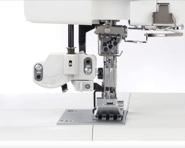Whether you’re craving a triple-layered stitch for added strength or a double layer for a sleek finish, the stitch guide is there to ensure precision and consistency. But what truly sets this feature apart is its effortless usability. With just a gentle push using one finger, the top cover stitch guide gracefully swings into position. The accompanying spreader moves seamlessly into its designated slot, primed to deliver those flawless stitches you’ve always desired.